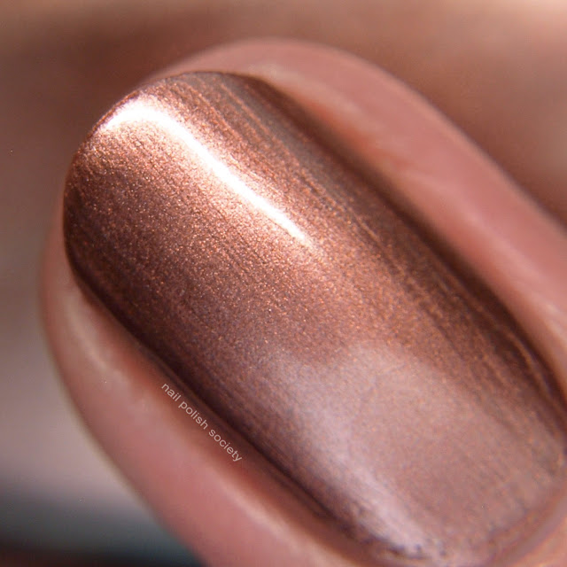 French Rosé is a rosy bronze metallic. I love this color and the twist of what could be just a typical bronze. Unfortunately it was pretty streaky and that's a turnoff for me. Shown is two coats with top coat.