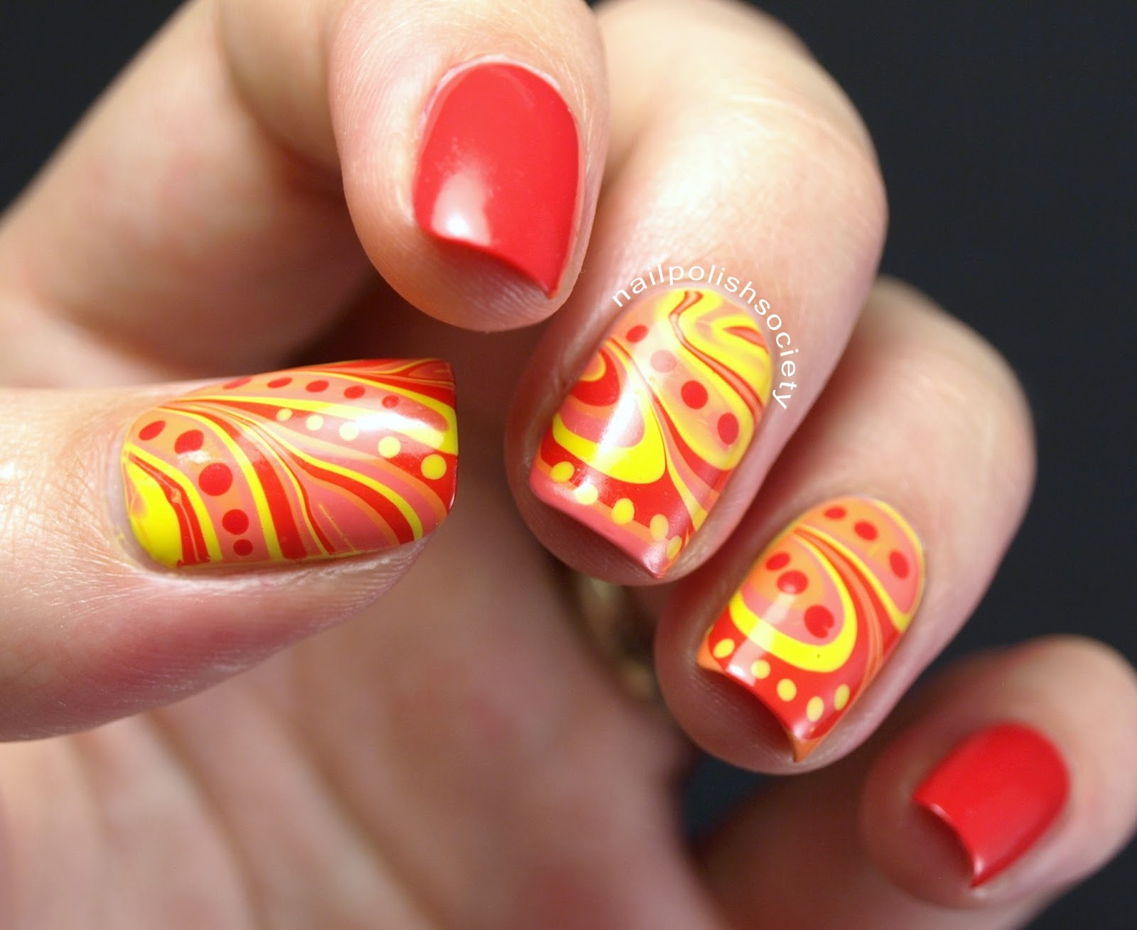 It was a relief that I found polishes that worked together for this water marble without too much trial and error! Sometimes it can take me ages to find the right combination of polishes that spread well in the water. The great part about doing a water marble is once you find that perfect combination, the rest of the process goes by in no time. You know how I can spend hours and hours on some of my manicures. With water marble, you're forced to do it quickly or else it won't work. Hmm, maybe I need to do more water marbles to help with my time management issues, haha!