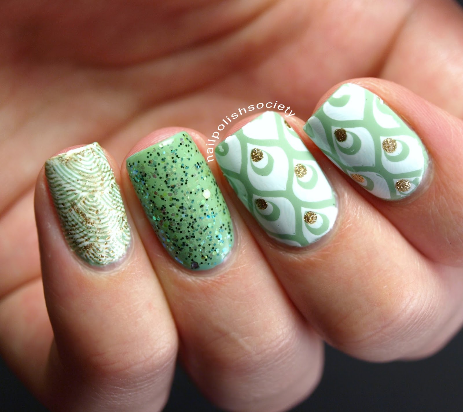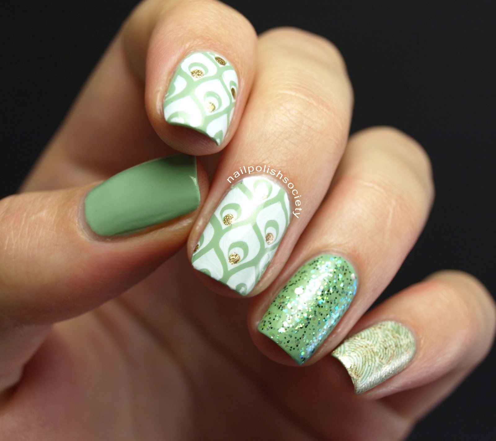 On my pinky I stamped with white polish, then stamped with the same image using the gold polish over it.