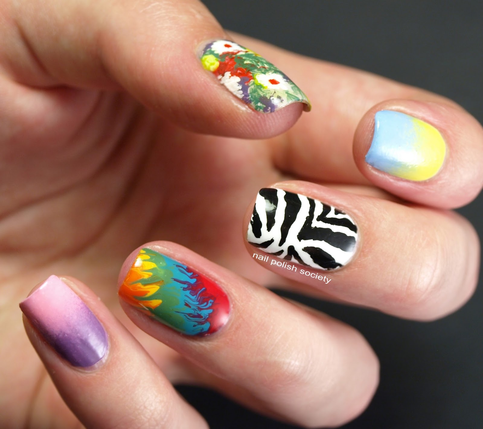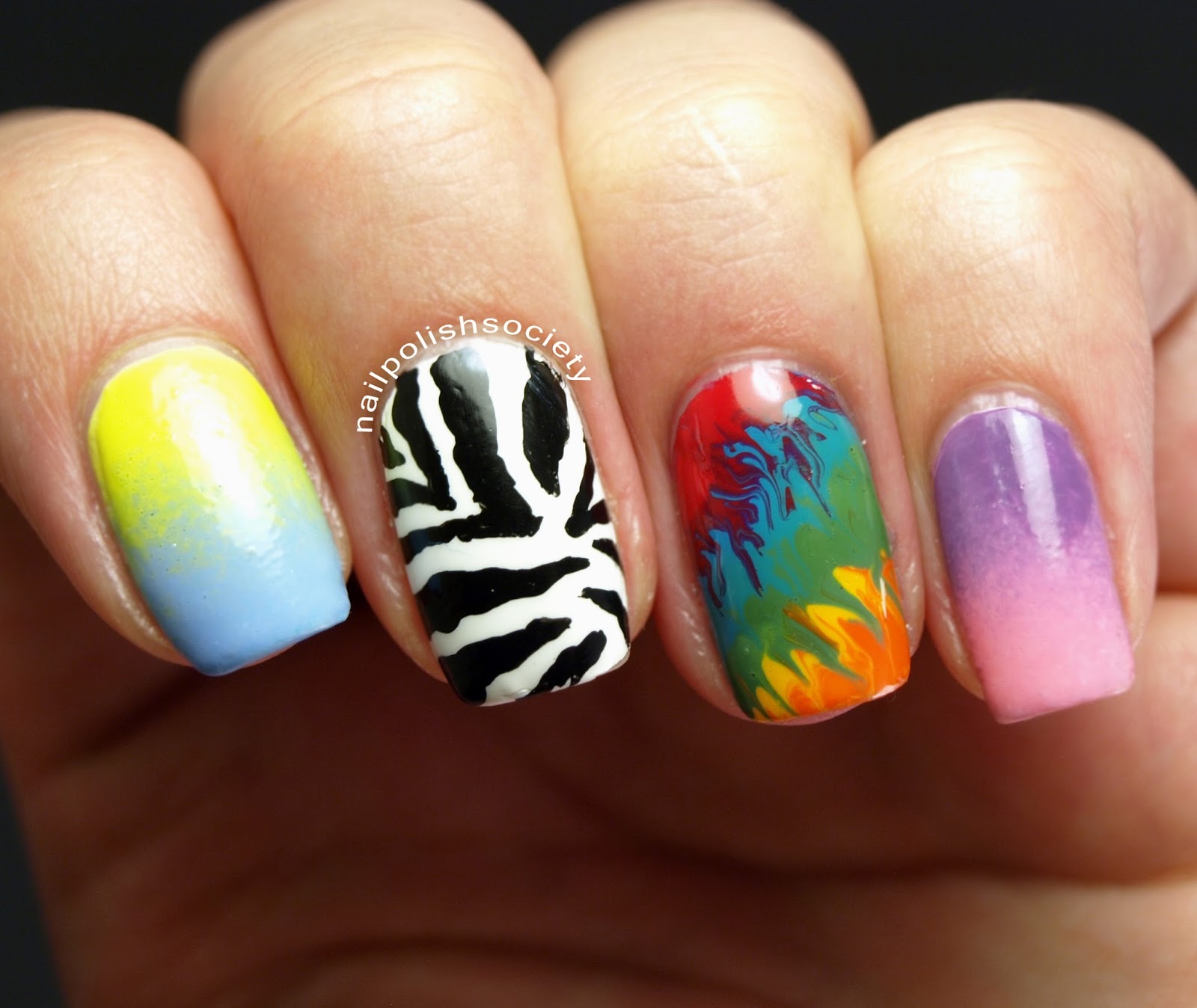 I really struggled with the tie dye design. I thought it would be so easy and straightforward! I was wrong. Maybe it was how many colors I was using that made it so hard. After a few failed attempts on my nail, and a night to sleep on it, I woke up realizing I needed to use the decal technique.