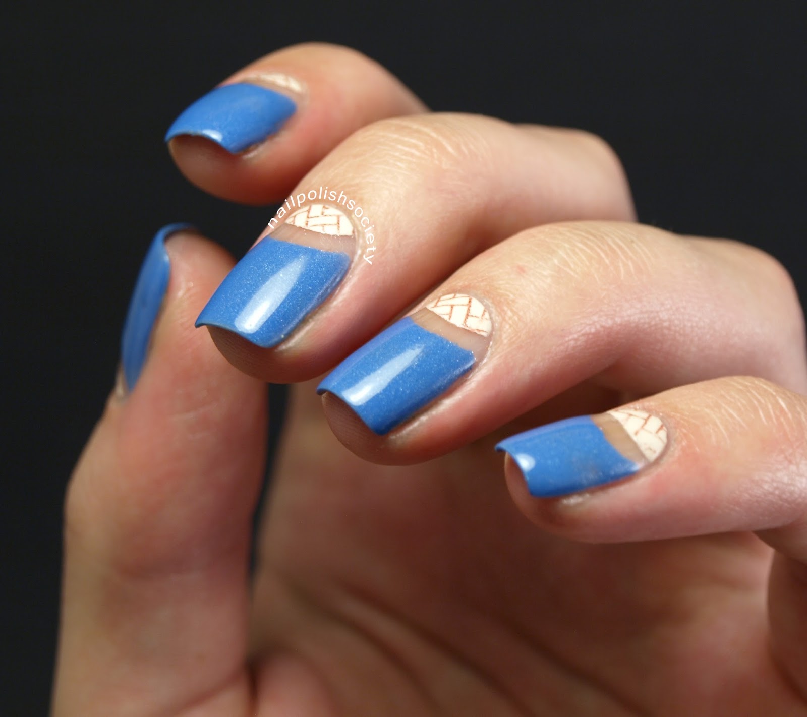 This lovely blue shade I used is ALIQUID Laquer I'm Heading Strait to Mackinac. I was so happy to get my hands on this polish, I can't believe it's taken me this long to wear it! When you do a half moon mani it's really helpful to use a polish that can be opaque in one coat. IHSTM is a perfect one-coater that worked really well.