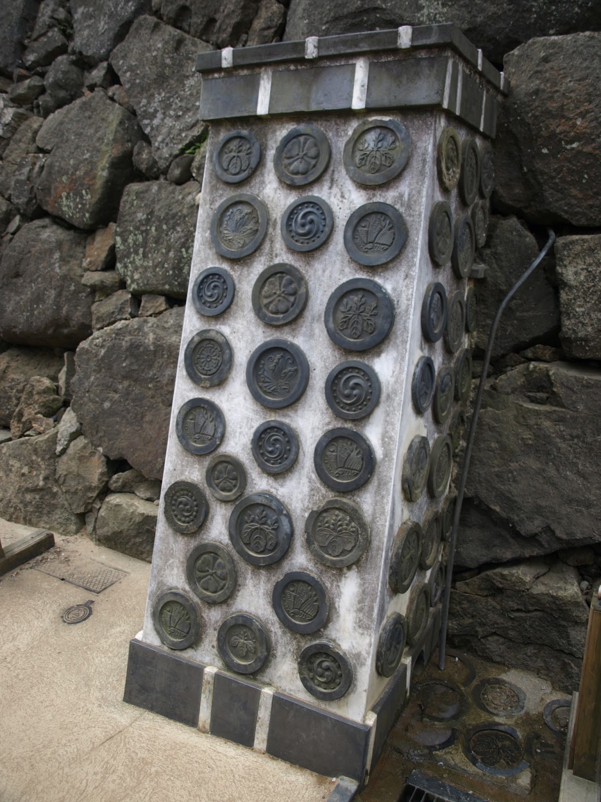Various kamon displayed at Himeji Castle.