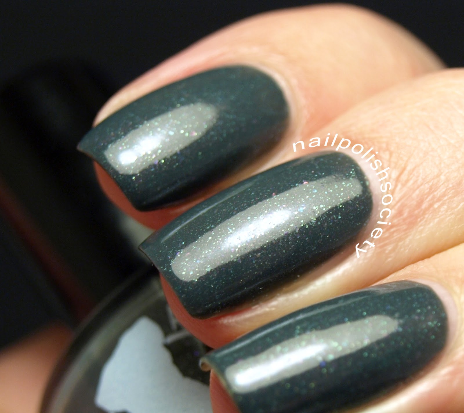 Forever and a Day is my favorite of the collection, so I had to show it to you first. It's described as a "dark teal-grey polish with green, purple and iridescent flecks and ruddy brown shimmer". This is my kind of polish, with the unique neutral-ish shade and subtle but complex flecks and shimmers. For me, I still don't have much experience with these squishy jelly formulas, so I had to be careful not to overwork the first coat. The formula was good and evened out well. I used two coats, plus topcoat.