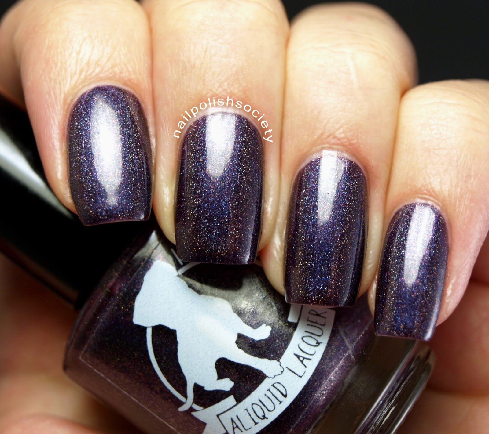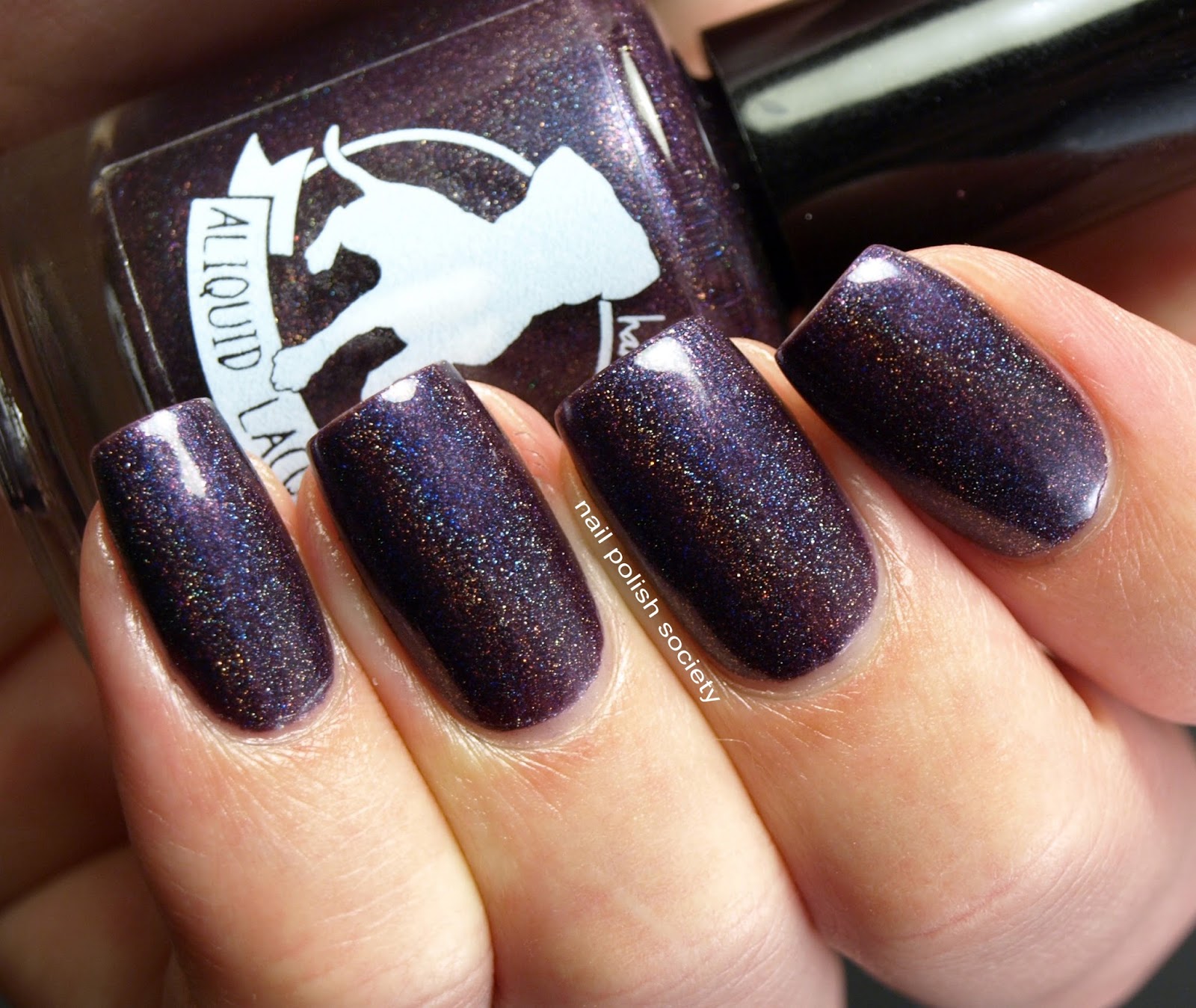 Unending Night is a mysterious and romantic deep grape polish described as a "blackened blue-purple linear holographic polish with copper and red sparks". I don't have another purple holo quite like this. Another good formula here. Shown is two coats, plus topcoat.