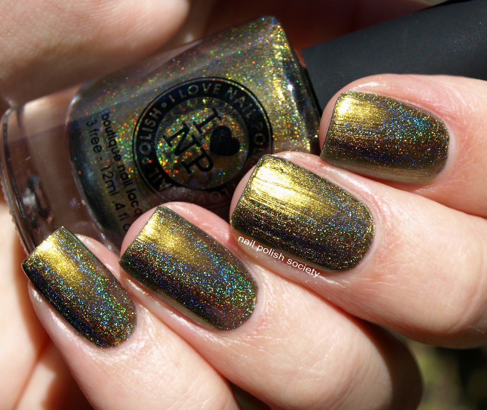 I Love Nail Polish Bishop (H) is a holograhic ultra chrome "that shifts from a refined gold to a light olive-green" with "sublte hints of greyish blue in the right light". I didn't by this shade in my first round of ILNP Fall collection purchases mainly because it's green. But when I went back for more I had to snag this because it's just so darn unique! The only thing that was a let down is that it got a little streaky. This is two coats plus topcoat.