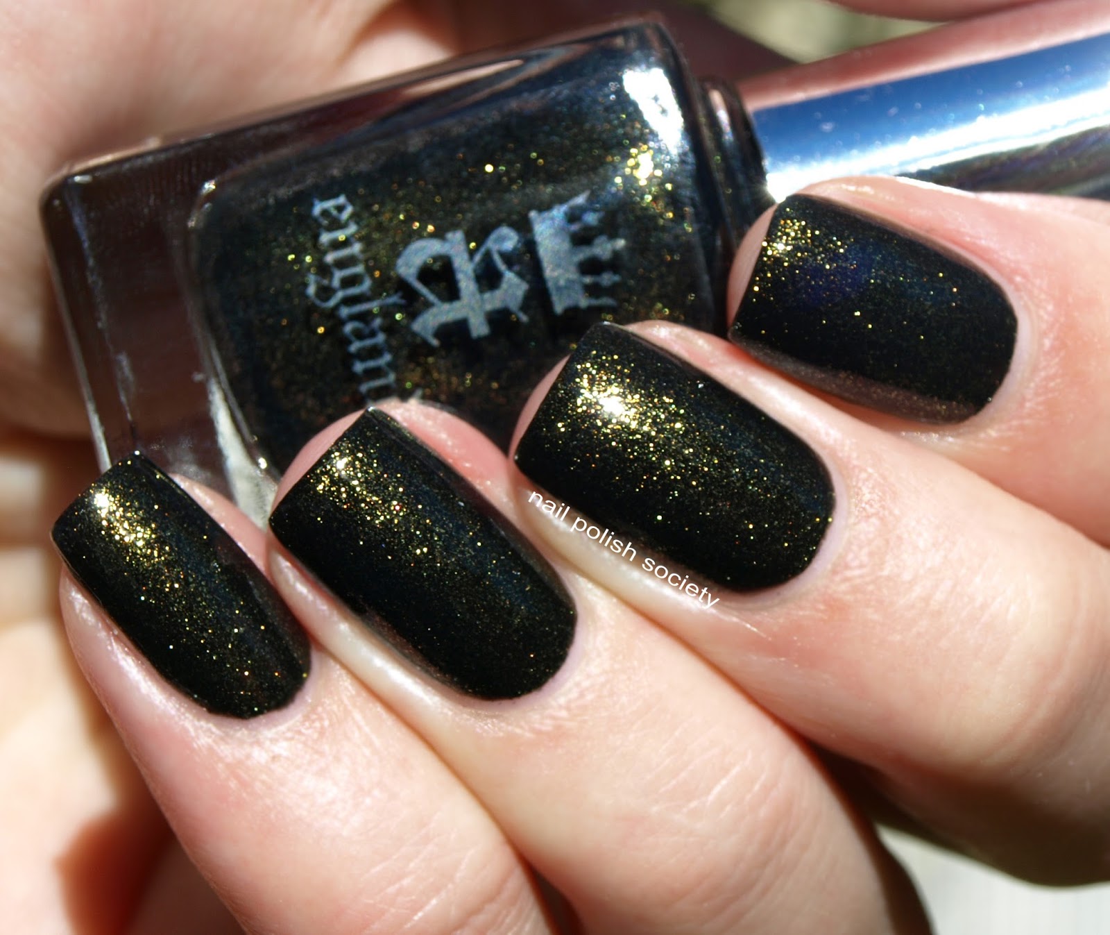 I've held off on purchasing A England Beauty Never Fails for some time because it's a green and I still don't have a passion for green like I do other colors. I finally decided to cave after about the hundreth photo I saw of it. Totally worth it. It is described as "a blackened pine base, brimming with emerald, gold, olive-green and bronze ultra-fine shimmer". I mean, have you even seen another polish just like this? I didn't think so. This is two coats for photos, plus topcoat, but is basically a one coater.
