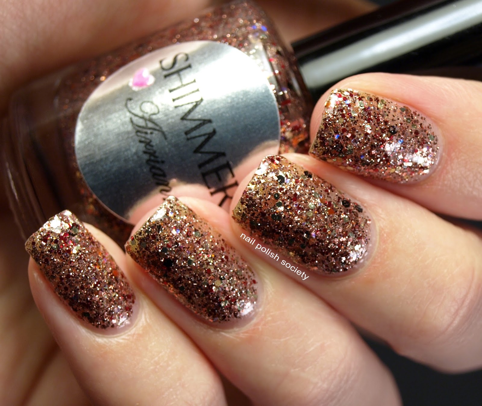 Hey ladies! Nail Polish Society has been a little quite for the past week as I've enjoyed birthday celebrations and extra time with family. I'm back today with some more Shimmer Polishes to show you. I have a total of ten that I have divided into two posts so as not to overwhelm you (or myself) with so much fabulous glitter! Just as my previous Shimmer Polish post, I have swatched each polish over bare nails to showcase the individuality of each one.