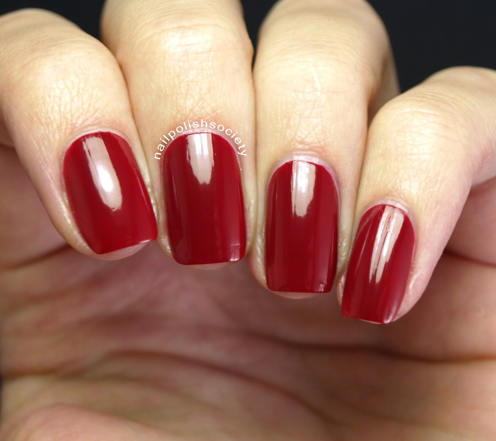 Stand By Your Man is a deep cherry red creme. These photos make it look a few shades lighter than it is in real life. But it also looks lighter in the bottle than it does on the nail. I used two coats.