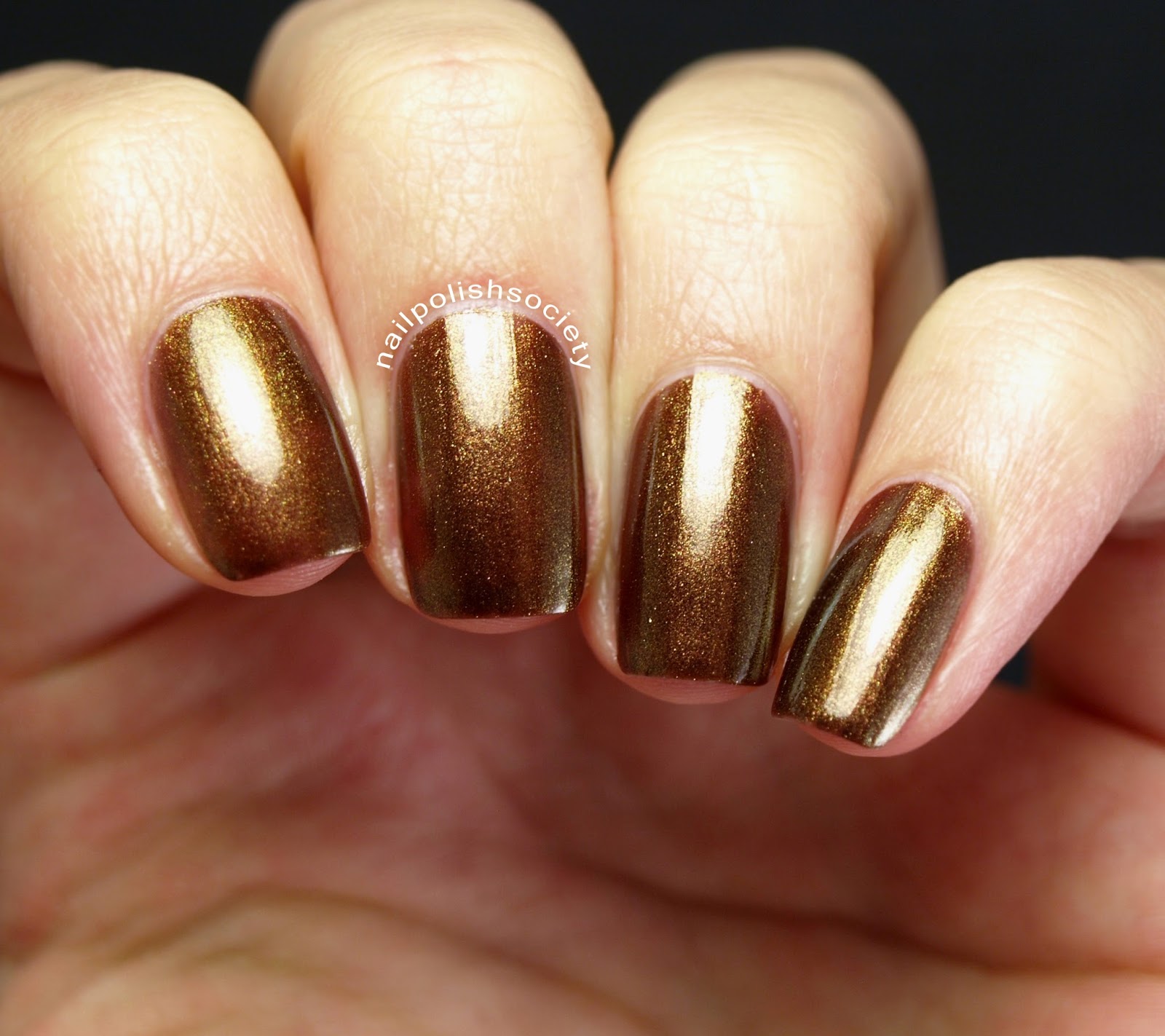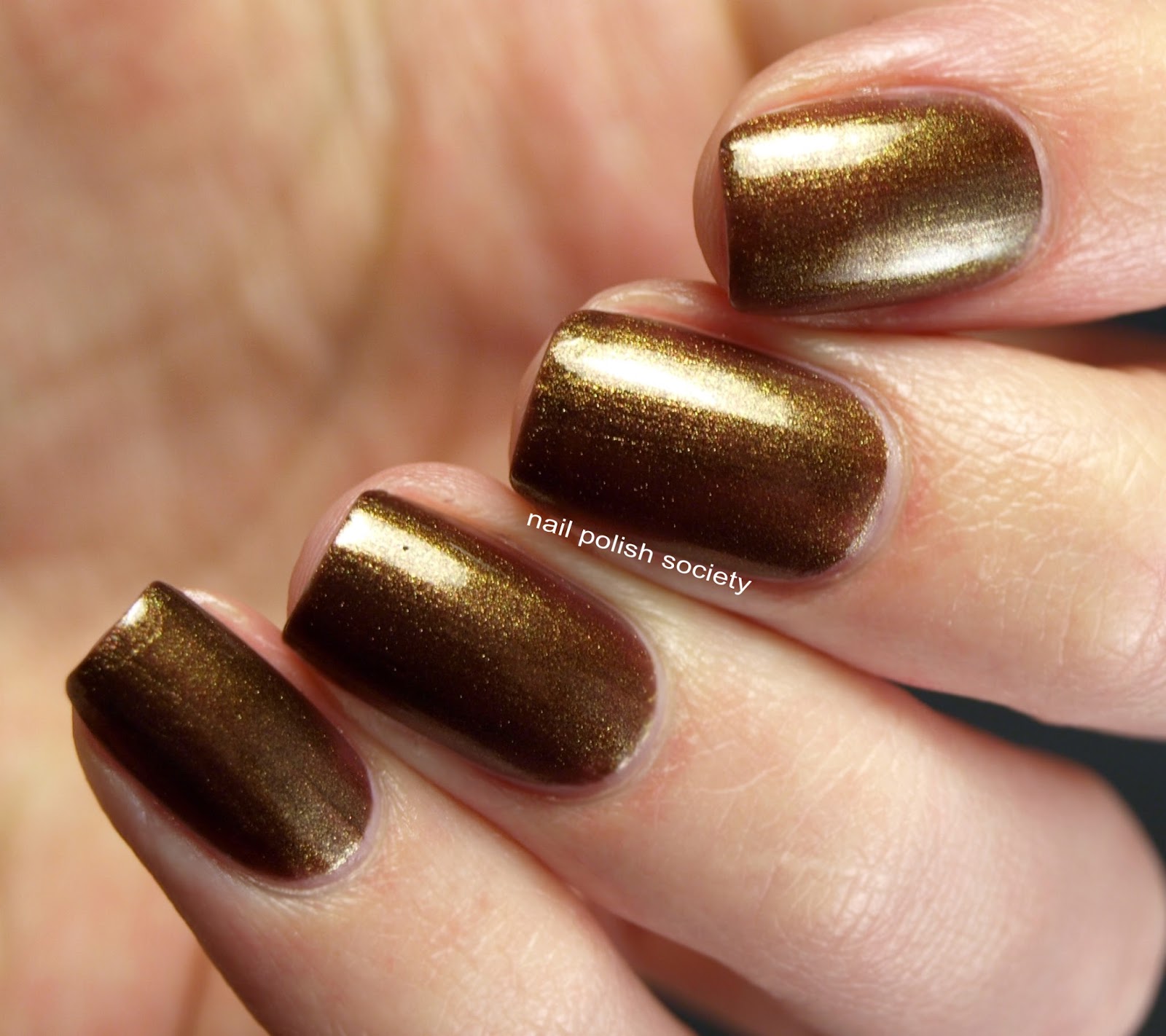 Ya Got Trouble is a unique bronze and subtle green duochrome shimmer. I think if this were a couple shades darker, it would be more flattering on me. This two coats.
