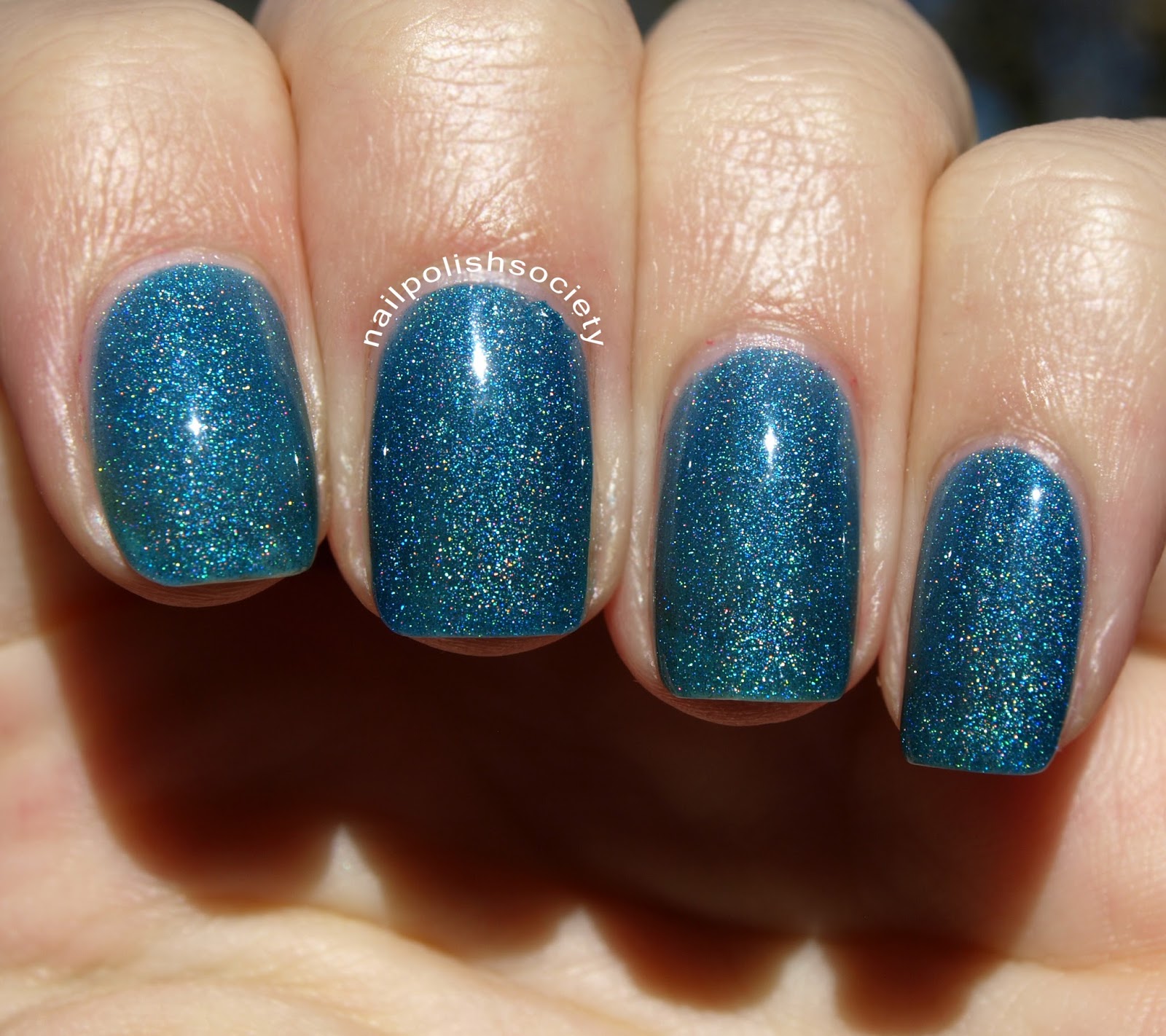 Once in a Blue Moon is a medium linear holographic teal-leaning blue jelly. The holo is the strongest in this shade compared to the other two.
