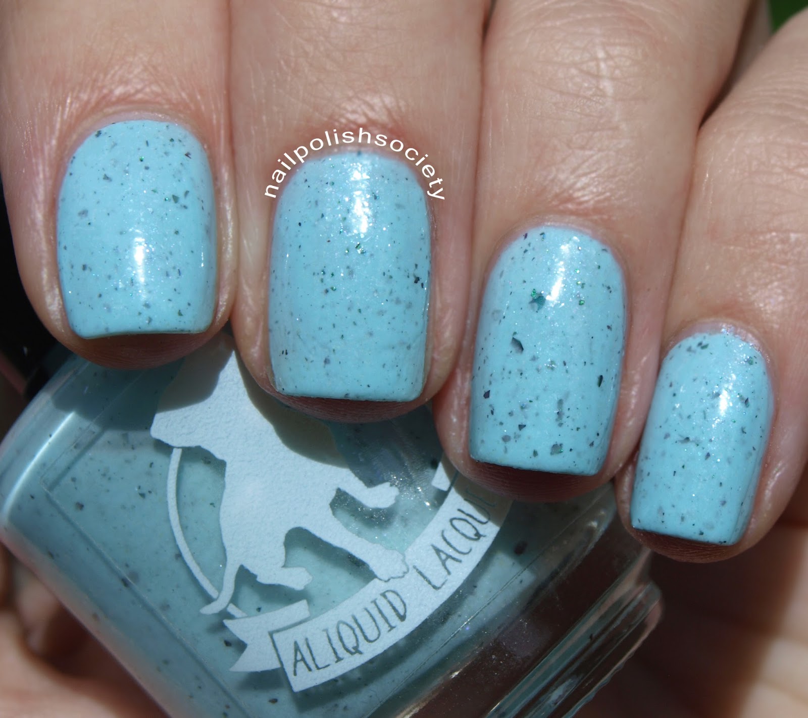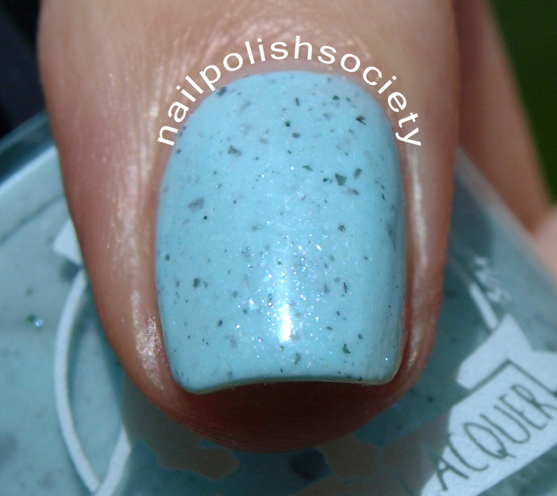 Cough as Much as You Choose (Kitty Bennet) is described as "pale minty blue with white and blue glass flecks, pink shimmer, and ultrachrome flakies in green, blue and purple." Again, great formula. This blue is just so gorgeous! Two coats, no top coat.