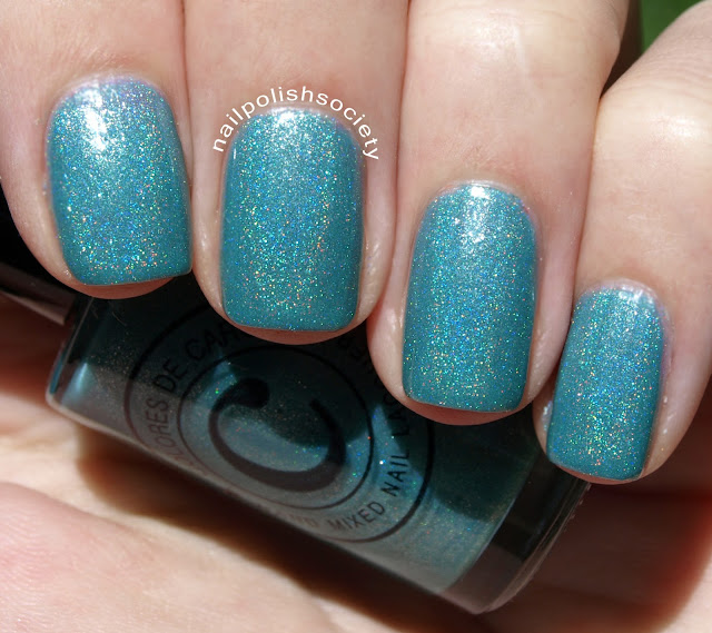 Sea Mist Sunrise- love the name, and it's my favorite. A blue turquoise with soft linear holo and silver metallic foil finish. Such a beautiful color! Two coats, no top coat.