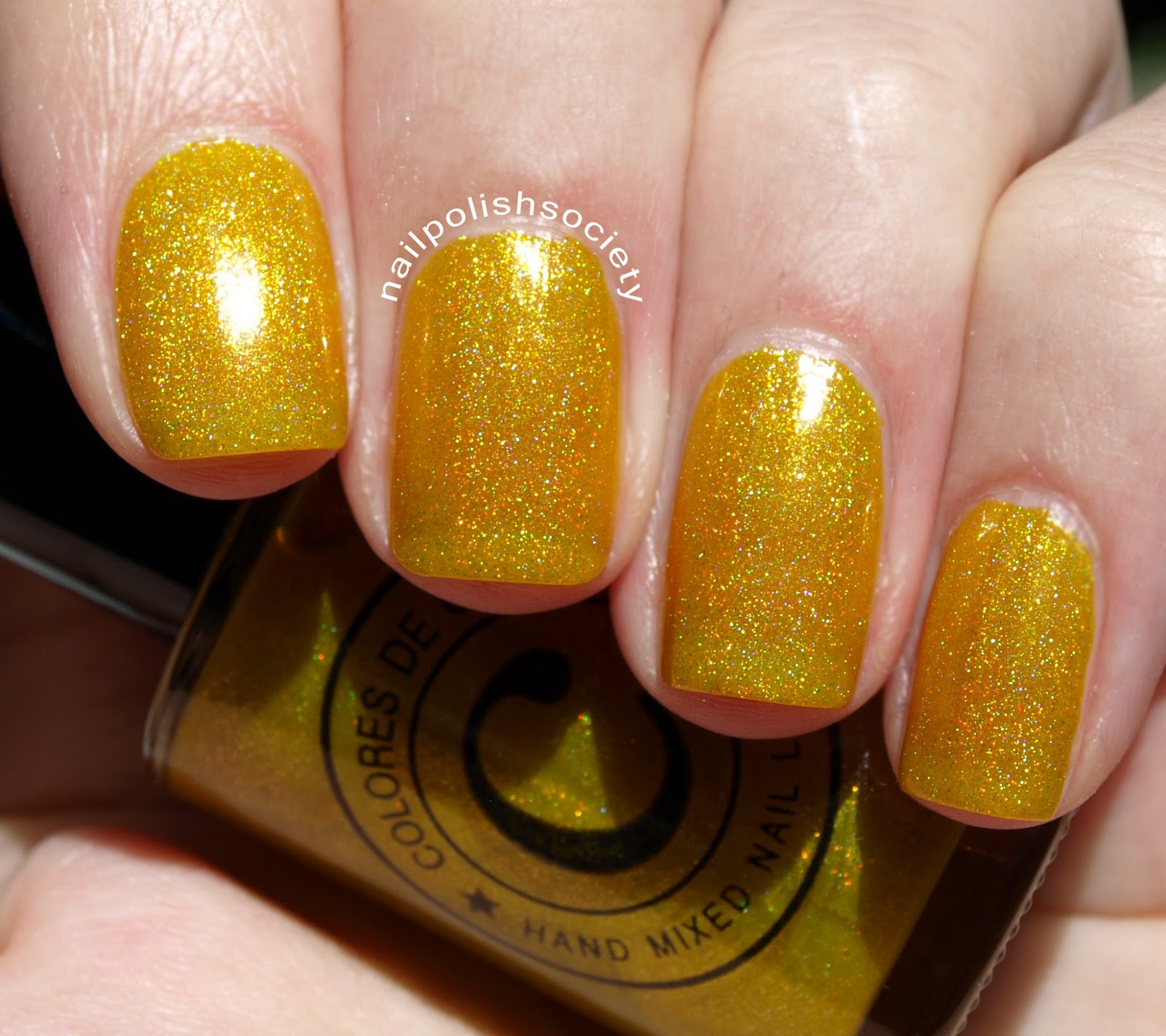 Pineapple Margarita is a medium yellow- just like a pineapple- with a soft holo sparkle. This also has a metallic foil finish that is visible in the shade. Two coats, no top coat.