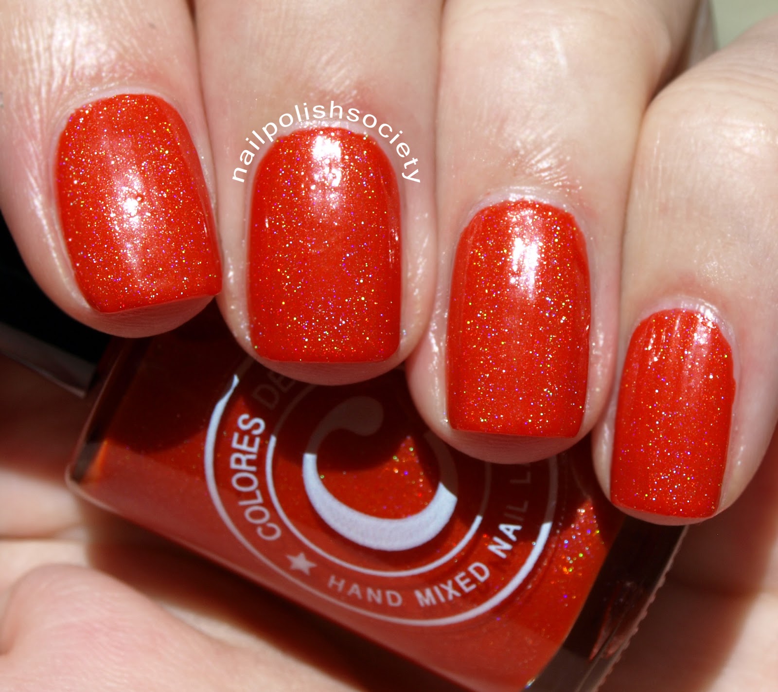Colores de Carol polishes are all 5-free (meaning no Formaldehyde, Toluene, DBP, Formaldehyde Resin, Camphor). The Happy Hour Collection consists of seven holographic shades with a foil finish. The holo is a little stronger in some shades than others. The application was consistently smooth and easy for each one with the exception of Papaya Sake, which was a little thicker. Each is shown with two coats, no top coat.