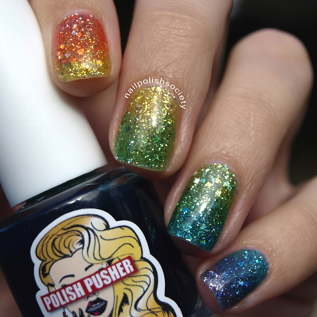 As expected, my camera didn't come anywhere close to capturing the magic of the glitter here. So you'll just have to use your imagination- imagine you're being blinded! It was like a holo rainbow inside of a rainbow. Whoa..