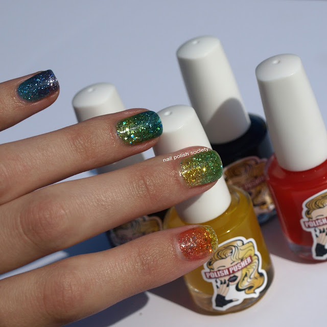 Polish Pusher Hot Pink, Lemon Drop, Teal, and Ultraviolet
