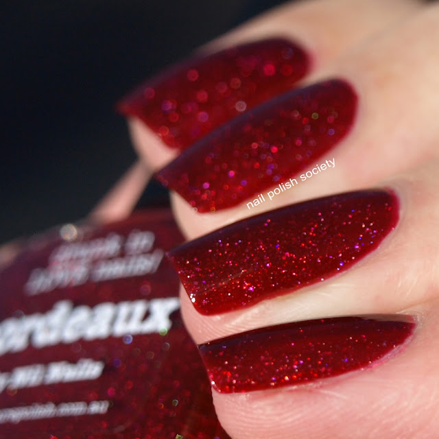Hello and happy Friday everyone! Today's post is dedicated to piCture pOlish Bordeaux, a stunning 2015 collaboration shade by stockist Nil Nails. Bordeaux is described as a "dark wine jelly scatter holo" and was inspired by the "rich texture, charming atmosphere, wine colour derived from the famous wine region." If you're a fan of red you will LOVE this one. And if you're not a red fan, you just may be now. The warm and rich earthiness of this one give it a sensuousness that I can't resist. (Apologies if that sounds ridiculous but it's true!)