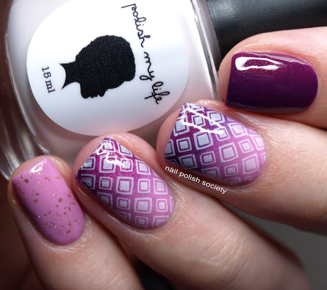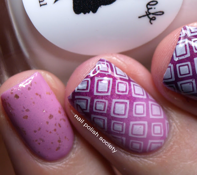 Hello everyone! I am excited about today's nail art because it is part of a challenge that I have just joined in on. This is my inaugural post for the Crumpet's Nail Tarts 40 Great Nail Art Ideas challenge. The idea behind the challenge is that everyone gets the same prompt (today's is "3 shades of purple") and then your assigned a more specific prompt out of the list of 40+ ideas (I was assigned "geometric". I like how structured it is, and yet there's still plenty of room for interpretation.