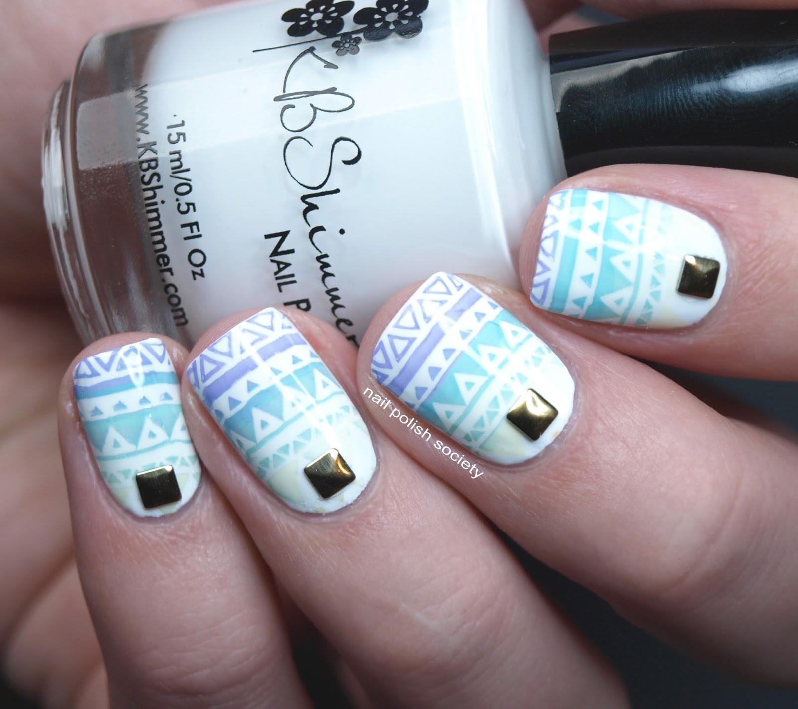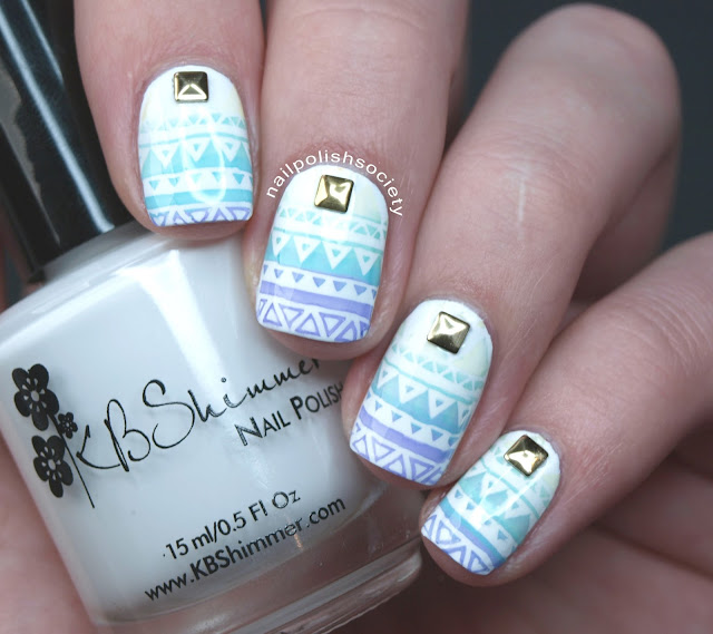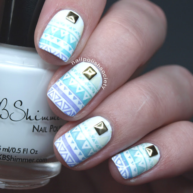 I still haven't figured out how to take better photos of white polish/bright colors. So just imagine this looking more colorful, and there's actually yellow polish where the studs are, haha.