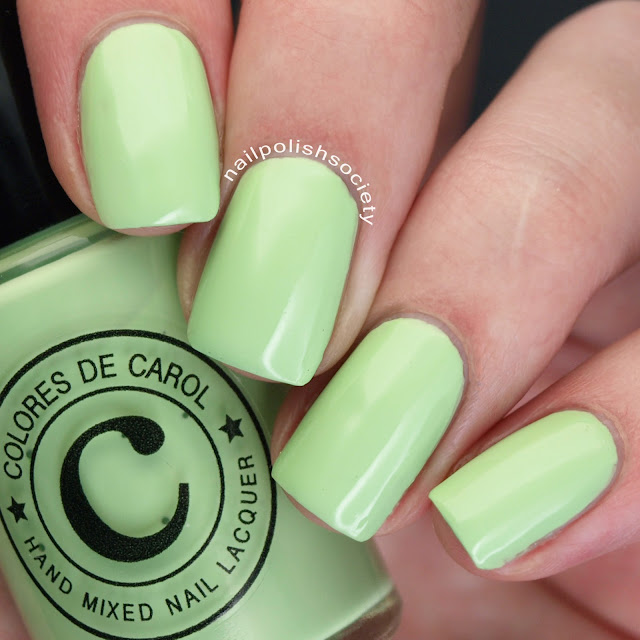 Lillian is a bright lime green. My camera is notorious for not representing greens well. This represents the tone of it well, but it's deeper than my photo shows. This is the last one I had issues with. Again, it was on the thicker side and I had a hard time getting it smooth. This is two coats, shown with top coat.
