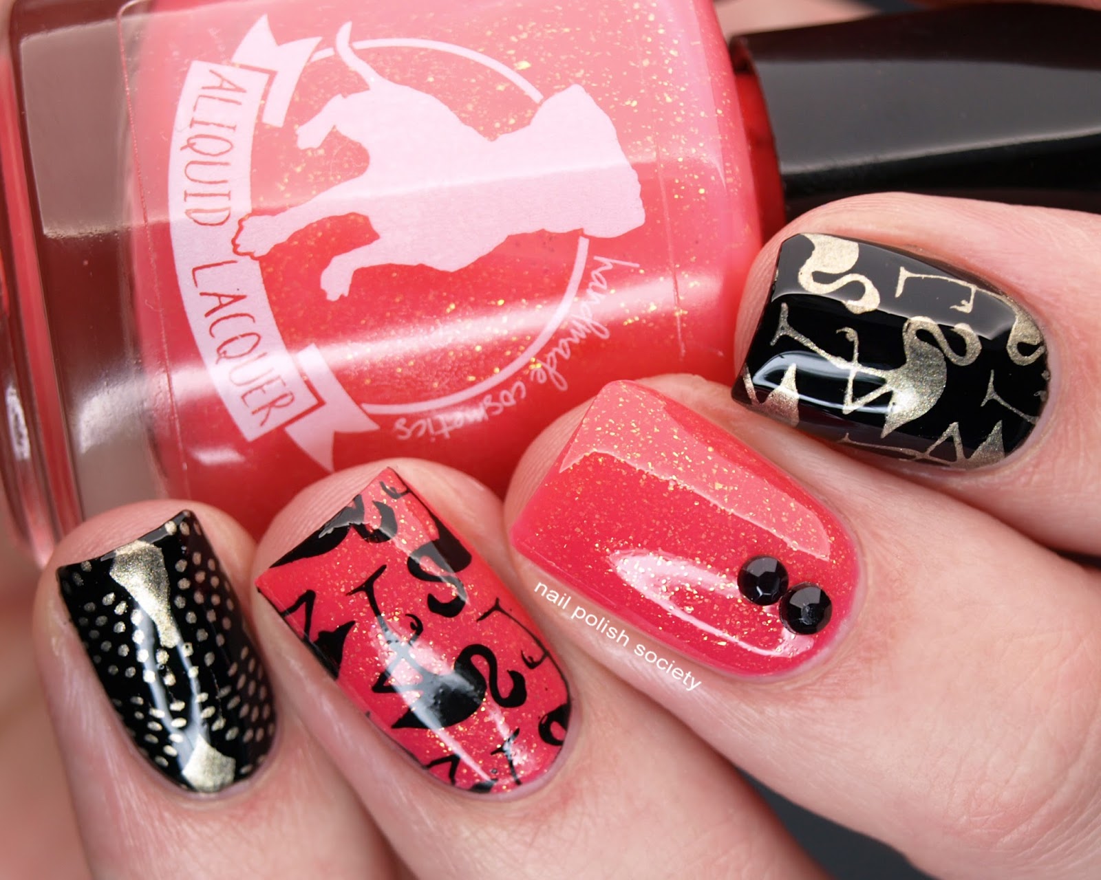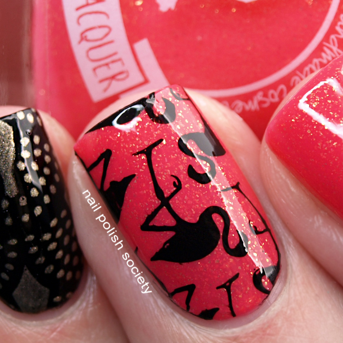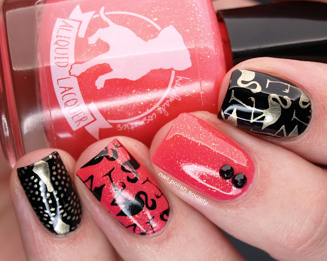 Bona Dea is described as a "flamingo pink crelly" so naturally I wanted to create some nail art with flamingos. I love that I have acquired enough stamping plates to actually have the images I wanted!