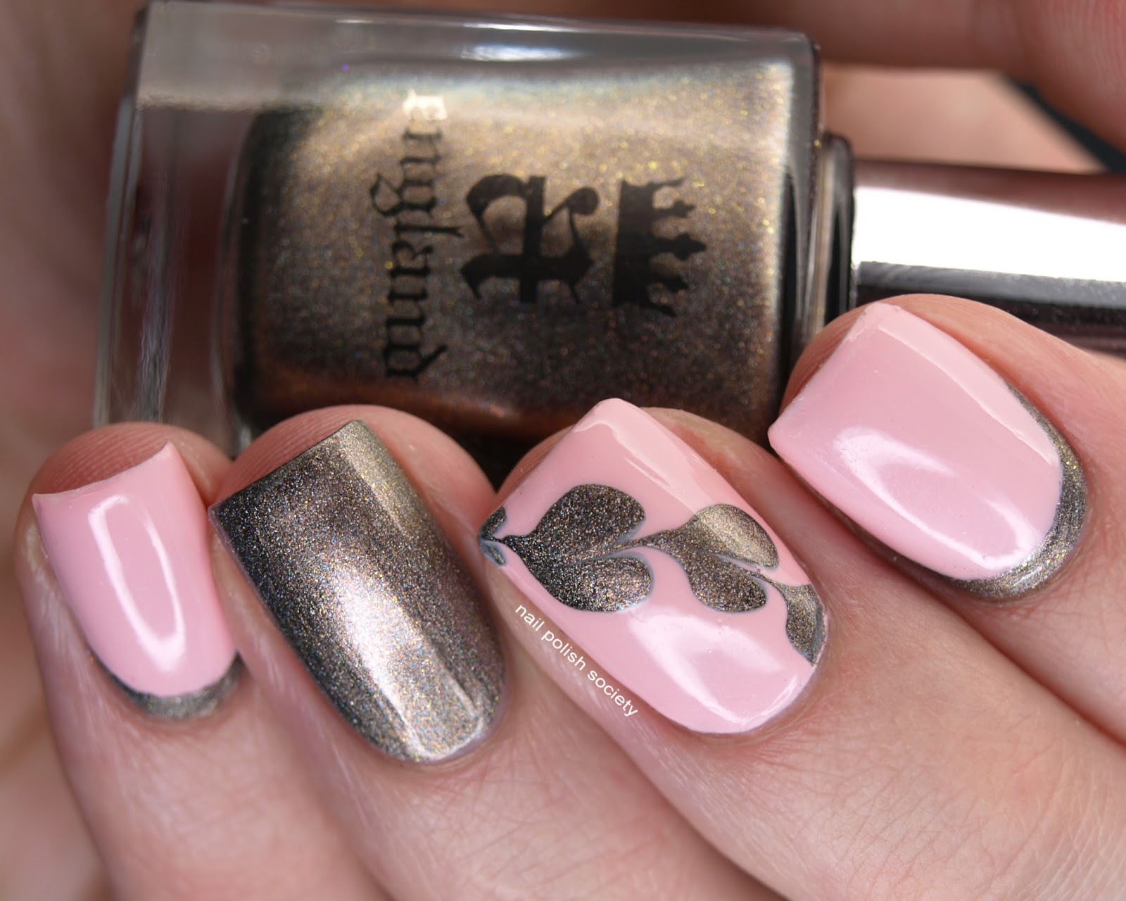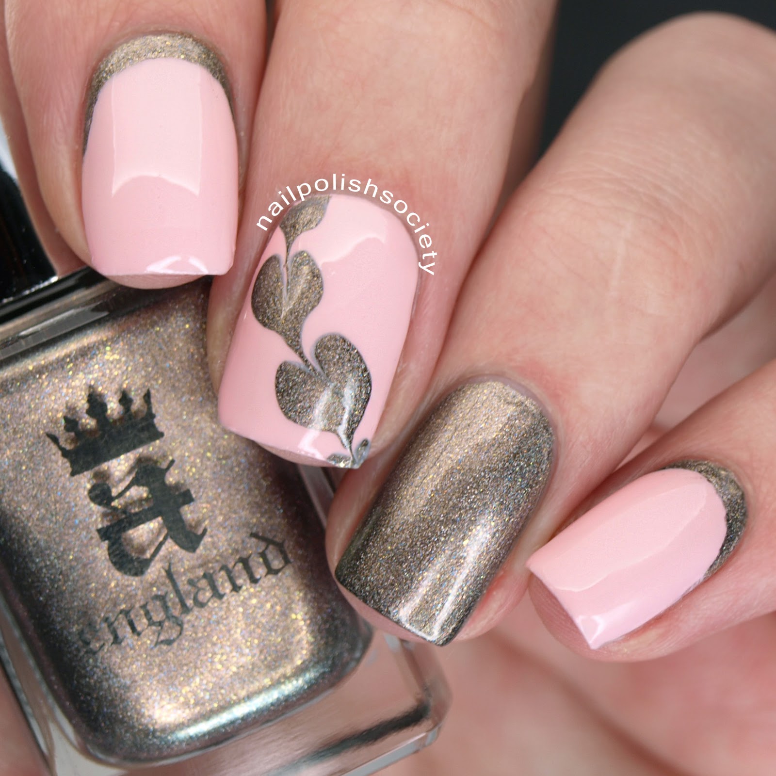 Happy Valentine's Day everyone! I really wanted to squeeze in one more nail art look for the holiday. Who knows, I may even do some more next week, haha. Last night I made the rookie mistake of running out of acetone. Because it was so late I had to go to two stores to find pure acetone. And naturally because the nail polish was in the vicinity I had to buy a bottle or two of pretties. I found this pretty soft pink and when I brought it home I wanted to use it right away. This A England polish was one of my untrieds and it's been sitting on my desk waiting for an excuse to be used. The two found their way to each other and this is what I ended up with.