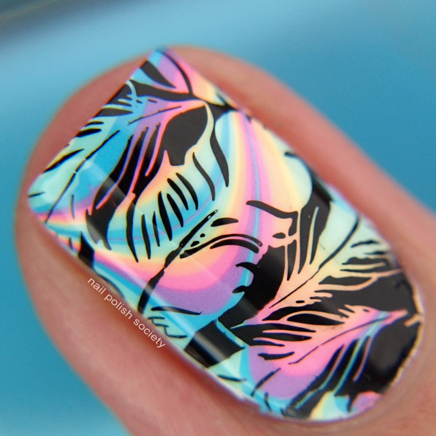 Feathers! I have a feeling that I'll be seeing some other feather manis today. Not only is it something that easily comes to mind, but they look so good in nail art! I have the new UberChic Fabulous Feathers Uber Mini stamping plate (that I will be reviewing soon) and I knew I wanted to use one of the images, but which one?? It was hard to narrow it down but I ended up going with a negative space image so I could do a water marble design underneath.