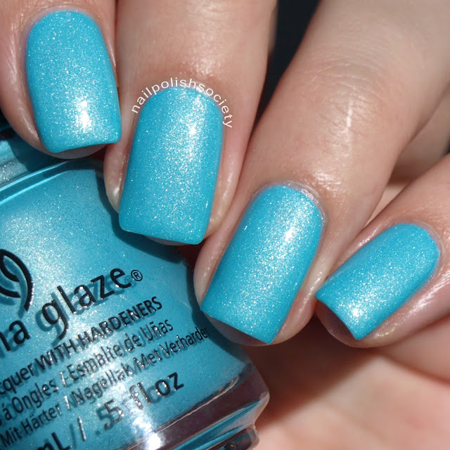 What I Like About Blue is a sky blue neon with a strong golden shimmer. I did two coats, plus top coat.