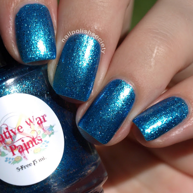 Sir Didymus is a "cyan-blue-red duochrome with red, blue, white and gold flakies in a vibrant blue base." This was another one that has an extremely subtle shift. I could see just the slightest color change in person. I like the gold flakies, which are most visible in the shade. Another great formula, this was two coats, no top coat.