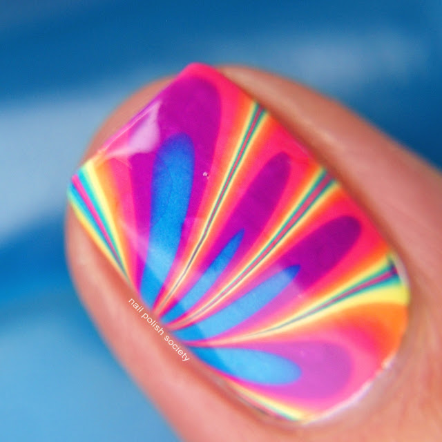 These jelly shades are sheer on their own so I applied a white polish base before water marbling. They turned out really bright when layered over the white.