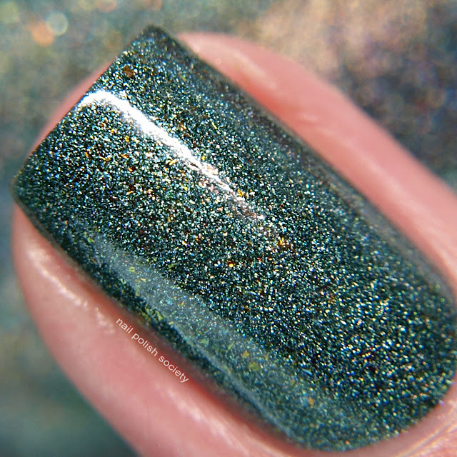 Shruikan is a "black based linear holo with color shifting flakes". This is another beautiful one, with the subtle, but very interesting flakes. I used two coats, no top coat.
