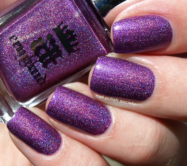 A England Crown of Thistles is an amazing holographic purple. As usual with this brand, the formula is buttery smooth with no issues. One coat gives great coverage, for photos I used two coats, no top coat. Photos are in direct sunlight.